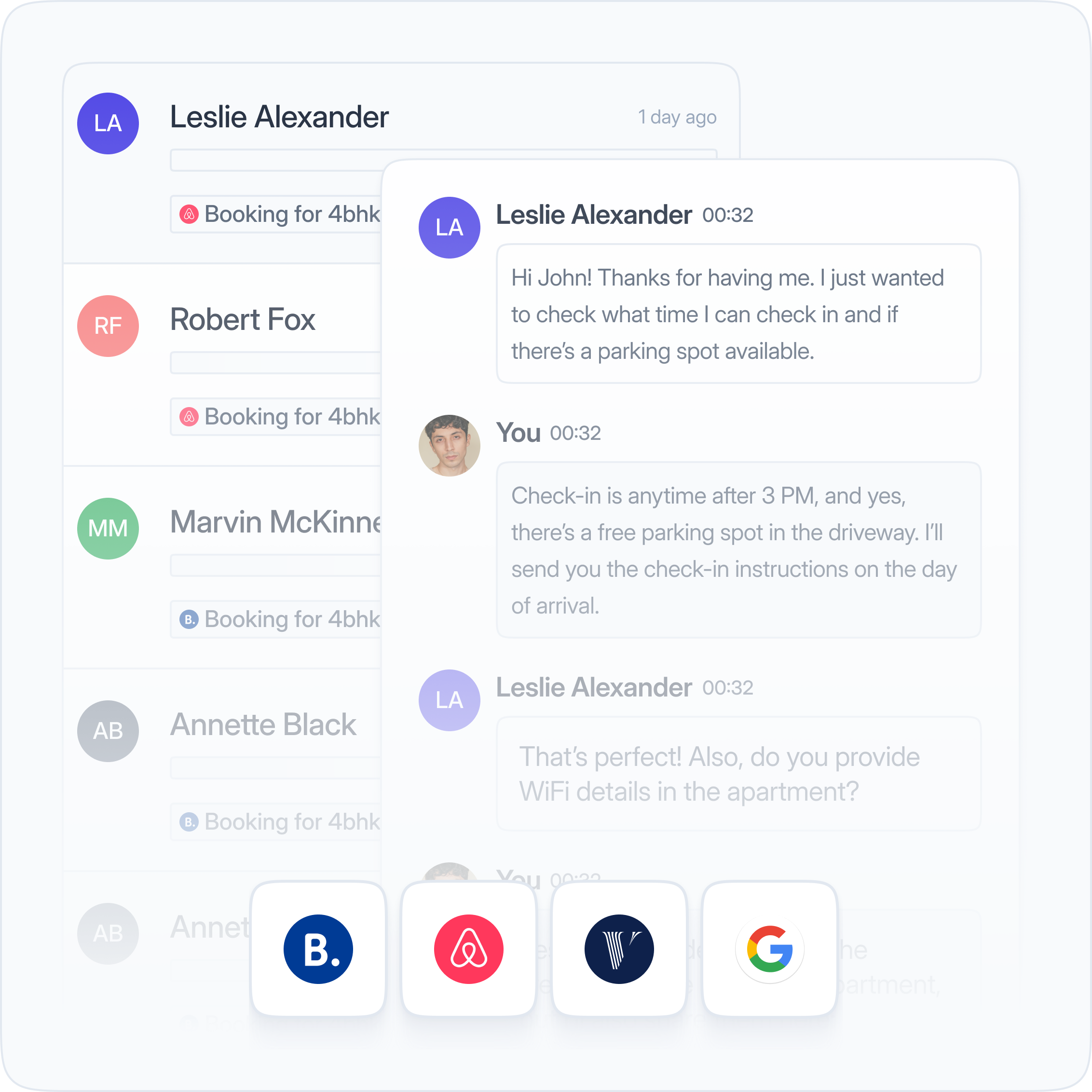 - Manage everything in one place—Airbnb, VRBO, Booking.com, Google, and more